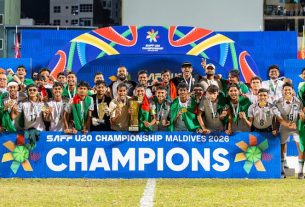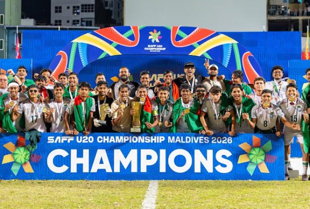 প্রধানমন্ত্রী তারেক রহমান বলেছেন, ‘দেশপ্রেম আর টিম স্পিরিটে উজ্জীবিত আমাদের সাহসী তরুণরা প্রমাণ করেছে, ঐক্যবদ্ধ প্রচেষ্টা থাকলে দেশে-বিদেশে বাংলাদেশের বিজয় এভাবেই অব্যাহত থাকবে, ইনশাআল্লাহ।’ সাফ অনূর্ধ্ব-২০ টুর্নামেন্টের ফাইনালে ভারতকে হারিয়ে চ্যাম্পিয়ন হয়েছে বাংলাদেশ। এই গৌরবজনক বিজয়ে বাংলাদেশ দলকে প্রাণঢালা অভিনন্দন জানিয়ে প্রধানমন্ত্রী তারেক রহমান এসব কথা বলেন। শুক্রবার মালদ্বীপের মালেতে অনুষ্ঠিত ফাইনালে টাইব্রেকারে ৪-৩ গোলে […]