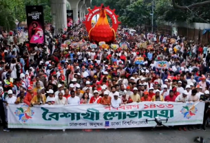 স্বাগতম ‘পহেলা বৈশাখ ১৪৩৩ বঙ্গাব্দ’। উৎসবমুখর পরিবেশ ও বর্ণিল আয়োজনে আজ ঢাকা বিশ্ববিদ্যালয়ের চারুকলা অনুষদের সামনে থেকে শুরু হয়েছে ঐতিহ্যবাহী বৈশাখী শোভাযাত্রা। এবারে মূল প্রতিপাদ্য নির্ধারণ করা হয়েছে, ‘নববর্ষের ঐকতান, গণতন্ত্রের পুনরুত্থান’। মঙ্গলবার (১৪ এপ্রিল ২০২৬) সকাল ৯টার পর বাংলা নতুন বছর ১৪৩৩-কে বরণ করে নিতে শিক্ষক-শিক্ষার্থীসহ সর্বস্তরের মানুষের স্বতঃস্ফূর্ত অংশগ্রহণে শোভাযাত্রাটি বের হয়। সকাল […]