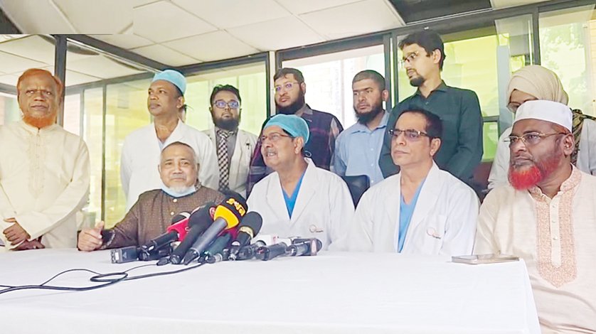 বাংলাদেশ জামায়াতে ইসলামীর আমীর ডা. শফিকুর রহমানের হার্টে বাইপাস সার্জারি সফলভাবে সম্পন্ন। অপারেশনের কাজে নিয়োজিত ডাক্তারগণ মিডিয়াকে ব্রিফ করেছেন।