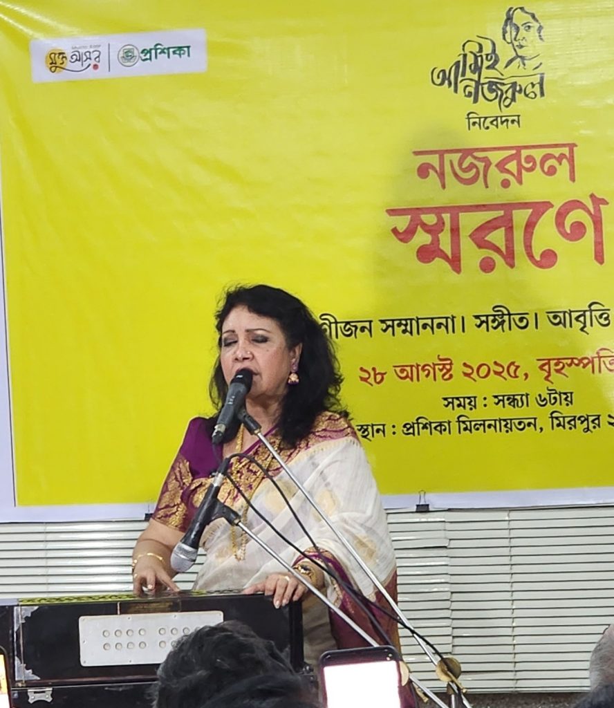অনুষ্ঠানে সংগীত পরিবেশন করেন শিল্পী ইয়াসমিন মুশতারী, উম্মে রুমা ট্রফি, শাহিনা পারভীন, শায়লা রহমান, সংগীতা পাল, ইশরাত জাহান, মো. সম্রাট, মোহনা রেজা ও অদ্বিতীয়া। আবৃত্তিকার শওকত আলী তারা নজরুলের অভিভাষণ পাঠ করেন এবং সেঁজুতি দাস নৃত্য পরিবেশন করেন।