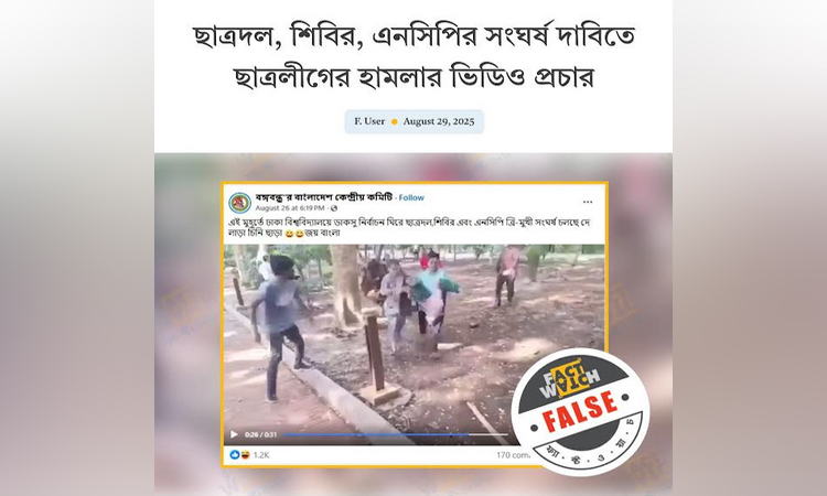 কোটা সংস্কার আন্দোলনকারীদের সঙ্গে ২০২৪ সালের ১৫ জুলাই সংঘর্ষে জড়ায় নিষিদ্ধ ঘোষিত ছাত্র সংগঠন ছাত্রলীগের নেতাকর্মীরা। পুরনো এই ভিডিও ফেসবুকে ব্যবহার করে ঢাবিতে ত্রিমুখী সংঘর্ষে জড়িয়েছে ছাত্রদল, ছাত্র শিবির ও এনসিপি সমর্থকরা- এমন একটি মিথ্যা অপপ্রচার শনাক্ত করেছে ফ্যাক্টওয়াচ।