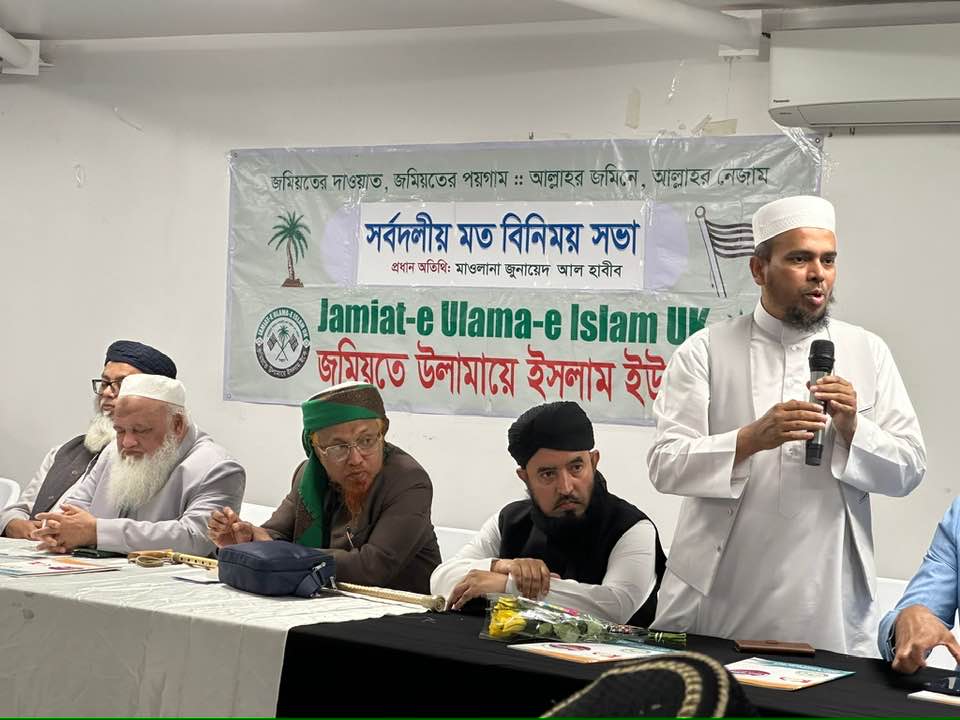 জমিয়তে উলামায়ে ইসলাম ইউকের উদ্যোগে সর্বদলীয় ওলামায়ে কেরাম এবং রাজনৈতিক ও সামাজিক নেতৃবৃন্দের এক মতবিনিময় সভা ১৫ জুলাই সোমবার লন্ডনে অনুষ্ঠিত হয়। এতে প্রধান অতিথি ছিলেন জমিয়তে কেন্দ্রীয় সহ-সভাপতি খতীবে বাঙ্গাল মাওলানা জুনায়েদ আল হাবীব। সভাপতিত্ব করেন কাউন্সিল অফ মস্ক টাওয়ার হামল্যাটস লন্ডনের চেয়ারম্যান মাওলানা হাফিজ শামছুল হক।