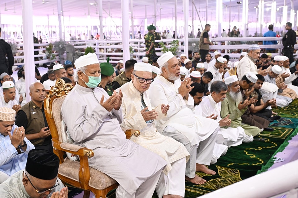 রাজধানীর বিভিন্ন এলাকা থেকে বিপুল সংখ্যক মুসল্লি ভোর থেকেই জাতীয় ঈদগাহ মাঠে আসতে শুরু করেন। নামাজ শুরুর আগেই ঈদগাহ ময়দান কানায় কানায় পূর্ণ হয়ে যায়। সকাল ৭টা ২৫ মিনিটের দিকে ঈদগাহ ময়দানে উপস্থিত হন প্রধান উপদেষ্টা ড. ইউনূস। সাথে অন্তর্বর্তীকালীন সরকারের উপদেষ্টাদের মধ্যে ফাওজুল কবির খান, ওয়াহিদউদ্দিন মাহমুদ, আসিফ মাহমুদ সজীব ভূঁইয়া প্রমুখ সাথে ছিলেন। – সাঈদ চৌধুরী