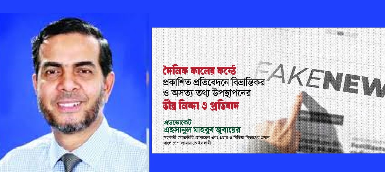 দৈনিক কালের কণ্ঠ পত্রিকার ১ম পাতায় ‘অন্তরালে জোট নিয়ে দৌড়ঝাঁপ’ শিরোনামে প্রকাশিত প্রতিবেদনে জামায়াতে ইসলামীর বিষয়ে যে বিভ্রান্তিকর ও অসত্য তথ্য উপস্থাপন করা হয়েছে, তার তীব্র নিন্দা ও প্রতিবাদ জানিয়ে বাংলাদেশ জামায়াতে ইসলামীর সহকারী সেক্রেটারি জেনারেল এবং কেন্দ্রীয় প্রচার ও মিডিয়া বিভাগের প্রধান এ্যাডভোকেট এহসানুল মাহবুব জুবায়ের ১৬ আগস্ট এক বিবৃতি দিয়েছেন।