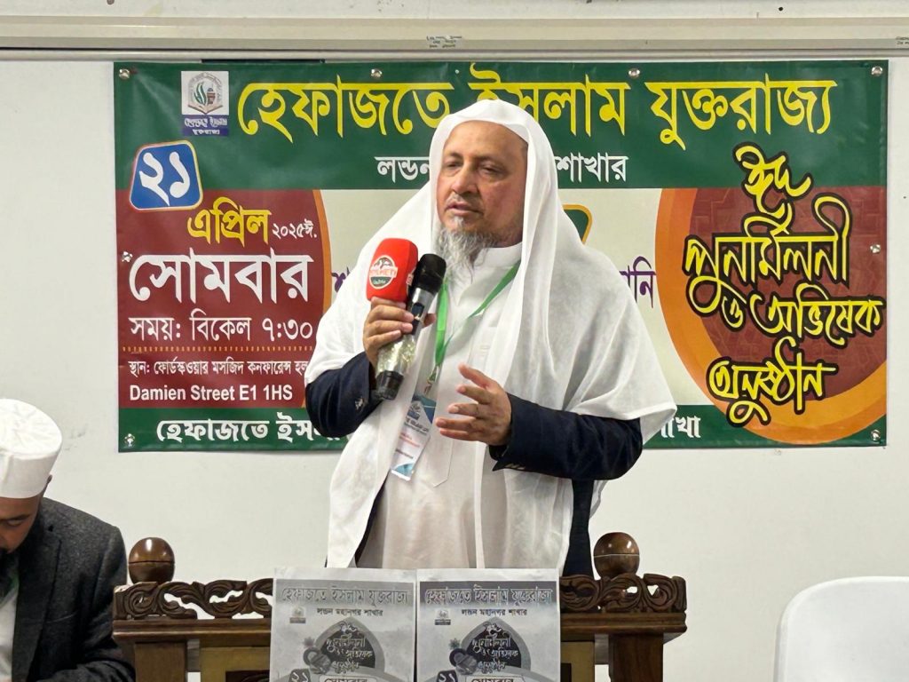 সোমবার (২১ এপ্রিল ২০২৫) বিকেলে পূর্ব লন্ডনের ফোর্ডস্কয়ার জামে মসজিদের কনফারেন্স হলে অনুষ্ঠিত সমাবেশে বক্তারা এসব কথা বলেন। লন্ডন মহানগর হেফাজতের সাধারণ সম্পাদক মাওলানা মামনূন মহি উদ্দিন, যুগ্ম সাধারন সম্পাদক মাওলানা মিছবাহুজ্জামান হেলালী, সহ-সাধারন সম্পাদক মাওলানা মুখতার হোসাইন ও হাফেজ মাওলানা আশরাফ মৌলার পরিচালনায় অনুষ্ঠানে বিভিন্ন রাজনৈতিক, সামাজিক ও কমিউনিটি নেতৃবৃন্দ অংশগ্রহণ করেন।