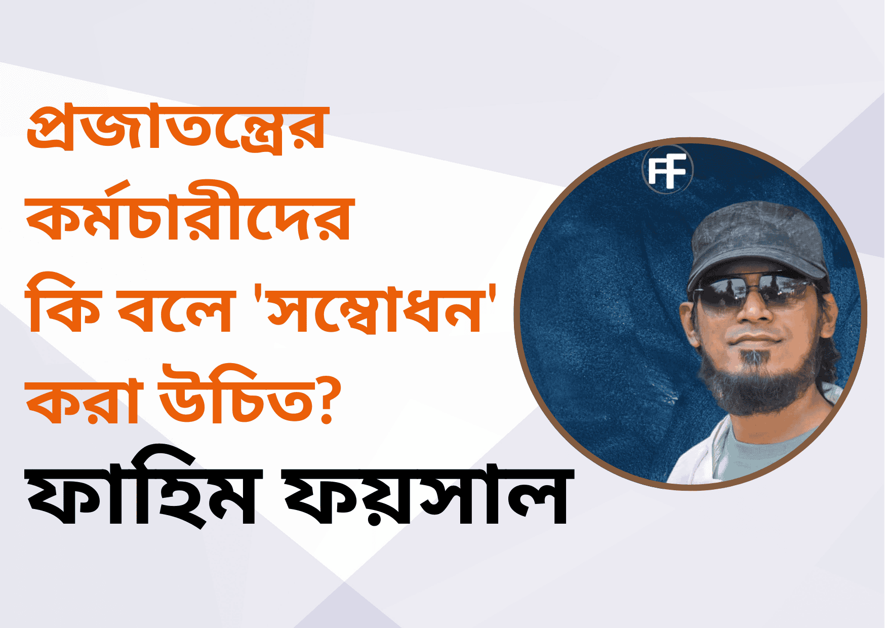 প্রজাতন্ত্র বা সরকারি কর্মচারীদের আসলে কি বলে ‘সম্বোধন’ করা উচিত? ‘স্যার’, ‘ভাই’, ‘আপা’, ‘জনাব’ নাকি ‘মহোদয়’? সংবিধানের কোথাও এমন কিছু কি আছে যে সরকারি একজন কর্মচারীকে অবশ্যই ‘স্যার’ বলতে হবে অথবা ‘ভাই’ বা ‘আপা’ এসব বলে সম্বোধন করা যাবেনা? তাকেতো ‘স্যার’ বলবে তার অধিনস্ত কর্মচারিরা। রাষ্ট্রের জনগণ বা নাগরিকরাতো তার অধিনস্ত কর্মচারি নয়। তাহলে নাগরিকরা প্রজাতন্ত্র বা সরকারি কর্মচারীদের কিভাবে ‘সম্বোধন’ করা উচিত?