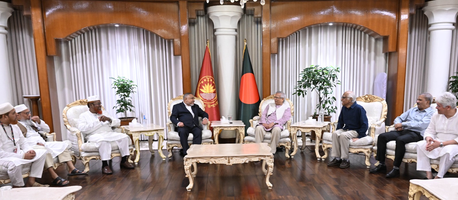 প্রধান উপদেষ্টা প্রফেসর ড. মুহাম্মাদ ইউনূসের সঙ্গে বুধবার (২২ অক্টোবর ২০২৫) সন্ধ্যায় বাংলাদেশ জামায়াতে ইসলামীর নায়েবে আমীর সাবেক এমপি ডা. সৈয়দ আব্দুল্লাহ মোঃ তাহেরের নেতৃত্বে ৪ সদস্যের একটি প্রতিনিধি দল রাষ্ট্রীয় অতিথি ভবন যমুনায় সাক্ষাৎ করেছেন। জামায়াতের এ প্রতিনিধি দলে আরও উপস্থিত ছিলেন সংগঠনের সেক্রেটারি জেনারেল সাবেক এমপি অধ্যাপক মিয়া গোলাম পরওয়ার, সহকারী সেক্রেটারি জেনারেল মাওলানা এটিএম মা’ছুম ও মাওলানা রফিকুল ইসলাম খান। বৈঠকটি অত্যন্ত আন্তরিকতা ও সৌহার্দ্যপূর্ণ পরিবেশে অনুষ্ঠিত হয়।