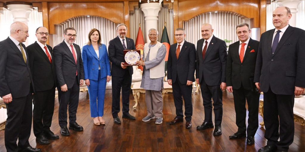 তুরস্কের সাত সদস্যের একটি নির্বাচন পর্যবেক্ষক দল আজ (১০ ফেব্রুয়ারি ২০২৬) প্রধান উপদেষ্টা প্রফেসর মুহাম্মদ ইউনূসের সাথে সৌজন্য সাক্ষাৎ করেছেন। রাষ্ট্রীয় অতিথি ভবন যমুনায় অনুষ্ঠিত এ সাক্ষাতে তুরস্কের পার্লামেনটারি সদস্যদের নিয়ে গঠিত পর্যবেক্ষক দলের নেতৃত্ব দেন টার্কিশ- বাংলাদেশ পার্লামেন্টারি ফ্রেন্ডশিপ গ্রুপের চেয়ারপার্সন মেহমেত আকিফ ইলমাজ (Mehmet Akif Yilmaz)।