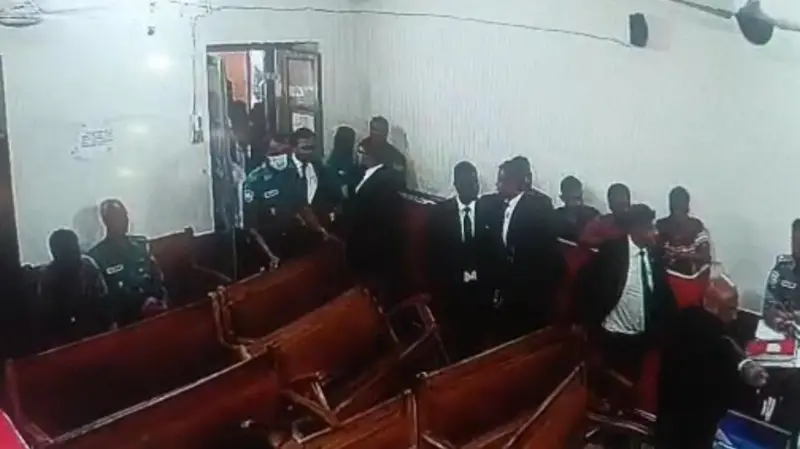 আদালত কক্ষে উপস্থিত আইনশৃঙ্খলা রক্ষাকারী বাহিনীর সদস্যদেরও চিৎকার করে ধমকাতেও শোনা যায় ওই আইনজীবীদের। খোঁজ নিয়ে জানা গেছে, যে আইনজীবীরা এজলাসে এই ঘটনা ঘটিয়েছেন তারা জেলা আইনজীবী সমিতির বিএনপিপন্থী নেতা হিসেবে পরিচিত। ভিডিওর একদম সামনে যাকে দেখা গেছে তিনি আইনজীবী সমিতির সভাপতি সাদিকুর রহমান লিংকন।