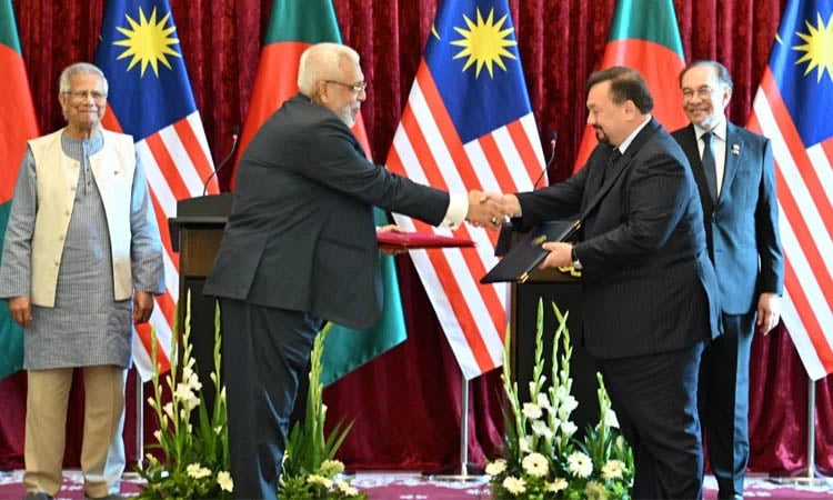 প্রধান উপদেষ্টা অধ্যাপক মুহাম্মদ ইউনূসের তিন দিনের মালয়েশিয়া সফরের দ্বিতীয় দিন মঙ্গলবার বাংলাদেশ ও মালয়েশিয়া বিভিন্ন খাতে সহযোগিতা বাড়াতে পাঁচটি সমঝোতা স্মারক (এমওইউ) এবং তিনটি নোট বিনিময় চুক্তি স্বাক্ষর করেছেন।