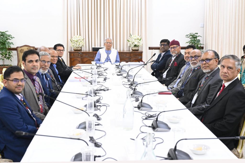 বৈঠকে অন্যান্যের উপস্থিত ছিলেন জাতীয় নিরাপত্তা উপদেষ্টা ড. খলিলুর রহমান, প্রধান উপদেষ্টার প্রতিরক্ষা ও জাতীয় সংহতি উন্নয়ন বিষয়ক বিশেষ সহকারী অবসরপ্রাপ্ত লেফটেন্যান্ট জেনারেল আব্দুল হাফিজ ও স্বরাষ্ট্র সচিব নাসিমুল গনি। – প্রধান উপদেষ্টার প্রেস উইং