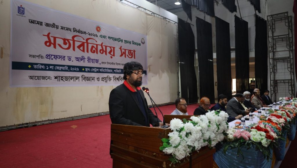 রবিবার (১ ফেব্রুয়ারি ২০২৬) সকাল ১১টায় শাহাজালাল বিজ্ঞান ও প্রযুক্তি বিশ্ববিদ্যালয়, সিলেট-এর সেন্ট্রাল অডিটোরিয়ামে সিলেট অঞ্চলের পাবলিক ও প্রাইভেট বিশ্ববিদ্যালয়ের সমন্বয়ে অনুষ্ঠিত মতবিনিময় সভায় সভাপতির বক্তব্যে তিনি এ অভিমত ব্যক্ত করেন।