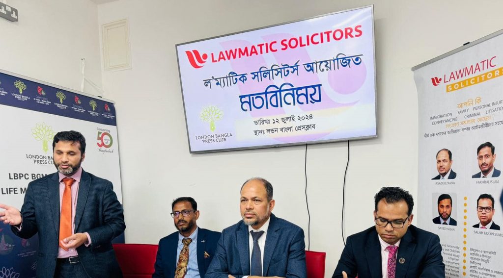 ল’ম্যাটিকের পার্টনার ইমিগ্রেশন, ফ্যামিলি, হাউজিং, প্রোপার্টি, কমার্শিয়াল লিটিগেশন ইত্যাদি বিষয়ে অভিজ্ঞ ও প্রশিক্ষণপ্রাপ্ত সলিসিটর ব্যারিষ্টার সালাহ উদ্দিন (সুমন) বলেন, বহু মানুষ আইনী সহায়তা না নিয়ে জটিলতায় পড়েন। অভিজ্ঞ আইনজীবীর মাধ্যমে অনেক বড় সমস্যার সহজ সমাধান পেতে পারেন। কেয়ার ভিসায় এসে যারা কাজ পাচ্ছেন না তাদের ব্যাপারে এক প্রশ্নের জবাবে তিনি বলেন, ভিসা প্রদানকারী বা এই ভিসায় আসা লোকজনকে যথেষ্ট নিয়মনীতি তথা কমপ্লায়েন্স মেনে চলতে হয়। যারাই এর ব্যত্যয় ঘটাবে তারা আইনের আওতায় আসবে। ক্ষতিগ্রস্তরা প্রতিকার পাওয়ার জন্য আইনের আশ্রয় নিতে হবে। এক্ষেত্রে গণসচেতনতা সৃষ্টির জন্য সাংবাদিক-সহ আমাদের সকলকে ভূমিকা পালন করতে হবে।