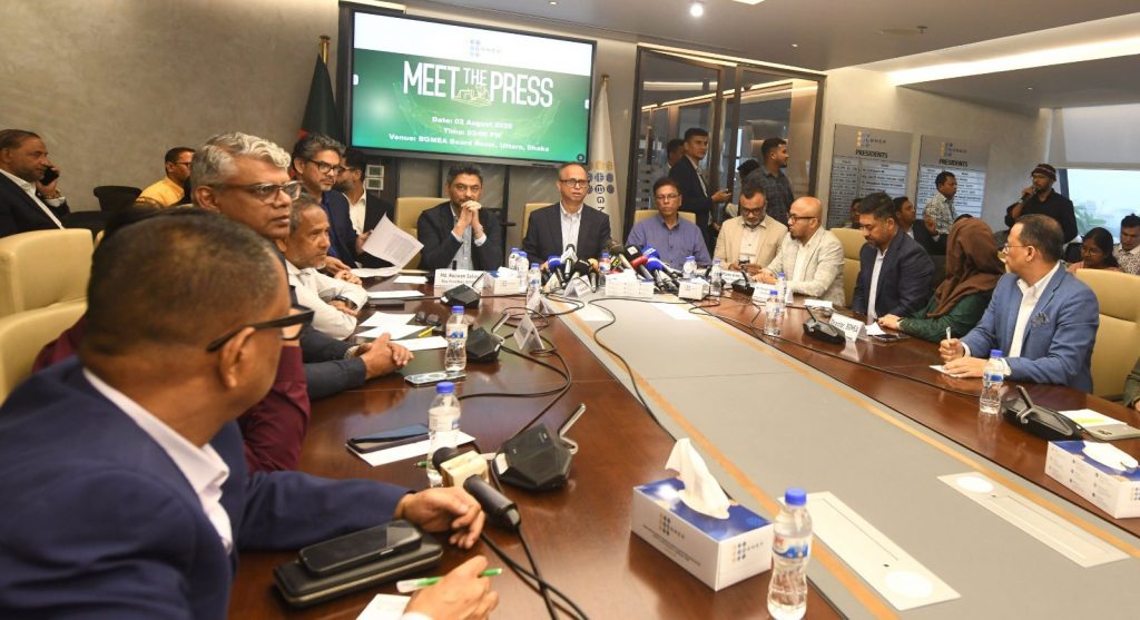 বাংলাদেশের পণ্য রপ্তানিতে মার্কিন যুক্তরাষ্ট্রের শুল্ক হ্রাস নিয়ে এক সংবাদ সম্মেলনের আয়োজন করে বাংলাদেশ পোশাক প্রস্তুতকারক ও রপ্তানিকারক সমিতি (বিজিএমইএ)। বিজিএমইএ দপ্তরে অনুষ্ঠিত ২ আগস্ট, শনিবার এ সংবাদ সম্মেলনে বিজিএমইএ সভাপতি যুক্তরাষ্ট্র সরকার কর্তৃক সম্প্রতি বাংলাদেশ থেকে আমদানিকৃত পোশাক পণ্যের ওপর অতিরিক্ত শুল্ক ৩৫% থেকে কমিয়ে ২০% নির্ধারণ করাকে বাংলাদেশের পোশাক শিল্পের জন্য একটি বড় স্বস্তির খবর হিসেবে উল্লেখ করেন।