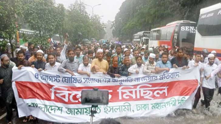 আজ শুক্রবার ঢাকার সোহরাওয়ার্দী উদ্যানে বাংলাদেশ জামায়াতে ইসলামীকে পূর্বনির্ধারিত সমাবেশ করার অনুমতি দেয়নি পুলিশ। এর প্রতিবােদে দলটি রাজধানীতে বিক্ষোভ মিছিল করেছে। বৃষ্টিতে ভিজেই বিপুল সংখ্যক নেতাকর্মী প্রতিবাদে অংশ নেন। মিছিল থেকে প্রতিবাদী জনতা সরকার বিরোধী বিভিন্ন স্লোগানে মুখরিত করেন এবং সমাবেশের অনুমতি না দেওয়ায় তারা তীব্র নিন্দা জানান। সেই সাথে তারা নির্বাচনকালীন দলনিরপেক্ষ কেয়ারটেকার সরকার, জামায়াত আমির ডা: শফিকুর রহমান ও মহানগরী উত্তর আমির মুহাম্মদ সেলিম উদ্দিনসহ শীর্ষ নেতৃবৃন্দের মুক্তির দাবি জানান।