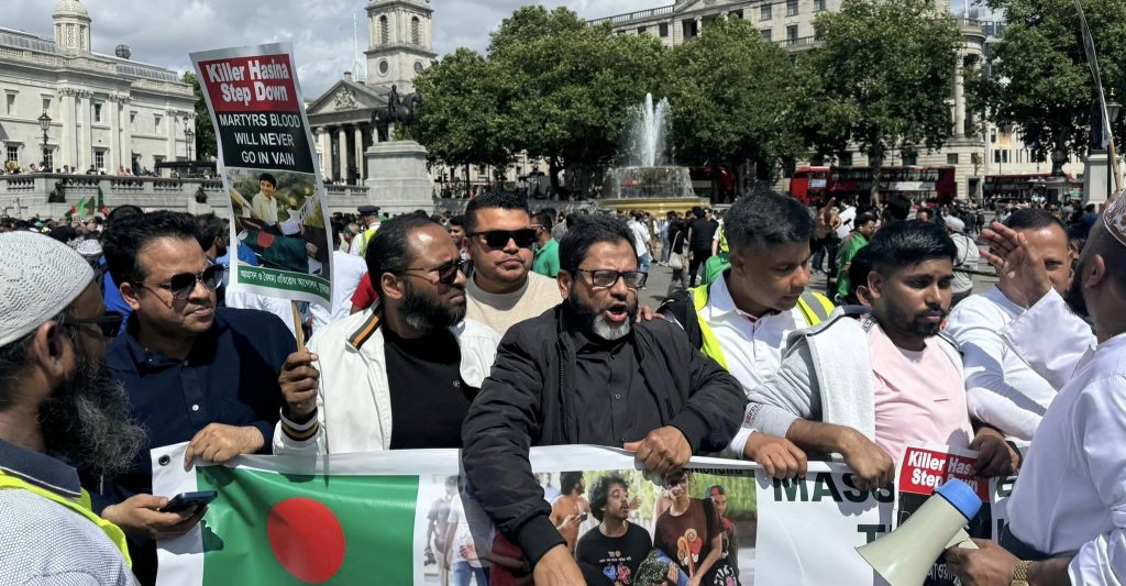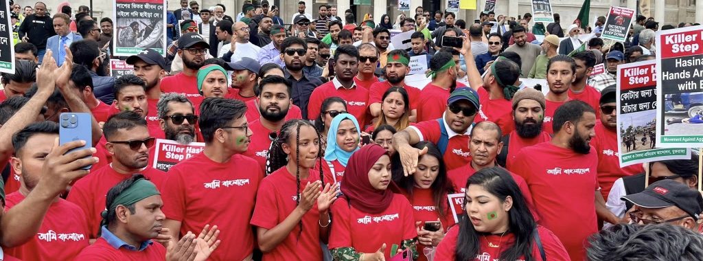 বাংলাদেশে নির্বিচারে হত্যা, হামলা ও মামলার প্রতিবাদে লন্ডনে হাজার হাজার প্রবাসী বাংলাদেশী বিক্ষোভ সমাবেশ করেছেন। আগ্রাসন ও বৈষম্য প্রতিরোধ আন্দোলনের আহবানে লন্ডনের ট্রাফালগার স্কয়ারে প্রবাসী বাংলাদেশীদের বিক্ষোভ সমাবেশ গতকাল জনসমুদ্রে পরিণত হয়েছিল।