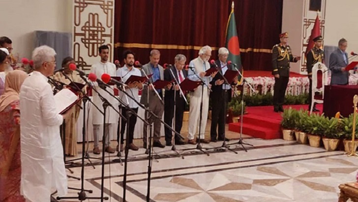 ১৬ আগস্ট, শুক্রবার বিকাল ৪টা ১০ মিনিটে বঙ্গভবনে নতুন উপদেষ্টাদের শপথগ্রহণ অনুষ্ঠিত হয়। অনুষ্ঠান পরিচালনা করেন মন্ত্রিপরিষদ সচিব মো. মাহবুব হোসেন। এর আগে তিন দফায় শপথ গ্রহণ করেন অন্তর্বর্তী সরকারের ১৭ উপদেষ্টা। এর মধ্যে ৮ আগস্ট শপথ নেন প্রধান উপদেষ্টা ড. মুহাম্মদ ইউনূসসহ ১৪ উপদেষ্টা। ঢাকা ও দেশের বাইরে থাকায় তিন উপদেষ্টা সেদিন শপথ নেননি। পরদিন গত ৯ আগস্ট, শুক্রবার প্রধান উপদেষ্টা এবং অন্যান্য উপদেষ্টাদের দপ্তর বণ্টন করে প্রজ্ঞাপন জারি করে মন্ত্রিপরিষদ বিভাগ। পরে ১১ আগস্ট শপথ নেন উপদেষ্টা সুপ্রদীপ চাকমা ও বিধান রঞ্জন রায় আর ১৩ আগস্ট শপথ নেন আরেক উপদেষ্টা ফারুক-ই-আজম।