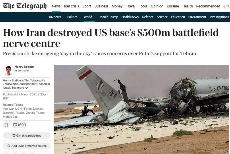সৌদি আরবের প্রিন্স সুলতান বিমানঘাঁটিতে যুক্তরাষ্ট্রের প্রায় ৫০ কোটি ডলারের ‘উড়ন্ত যুদ্ধক্ষেত্র নিয়ন্ত্রণ কেন্দ্র’ ধ্বংস করেছে ইরান। এটি ছিল আমেরিকার বিমানবাহিনীর সামরিক শক্তির অন্যতম গুরুত্বপূর্ণ চার ইঞ্জিনবিশিষ্ট ঘূর্ণায়মান রাডার ডোম। শত শত মাইল জুড়ে আকাশের পরিস্থিতি নজরদারি করতে এটি কমান্ডারদের সাহায্য করে।