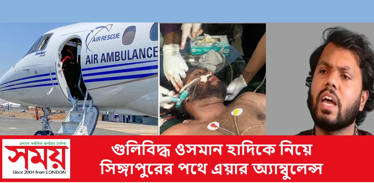 গুলিবিদ্ধ ওসমান হাদিকে নিয়ে সিঙ্গাপুরের পথে এয়ার অ্যাম্বুলেন্স