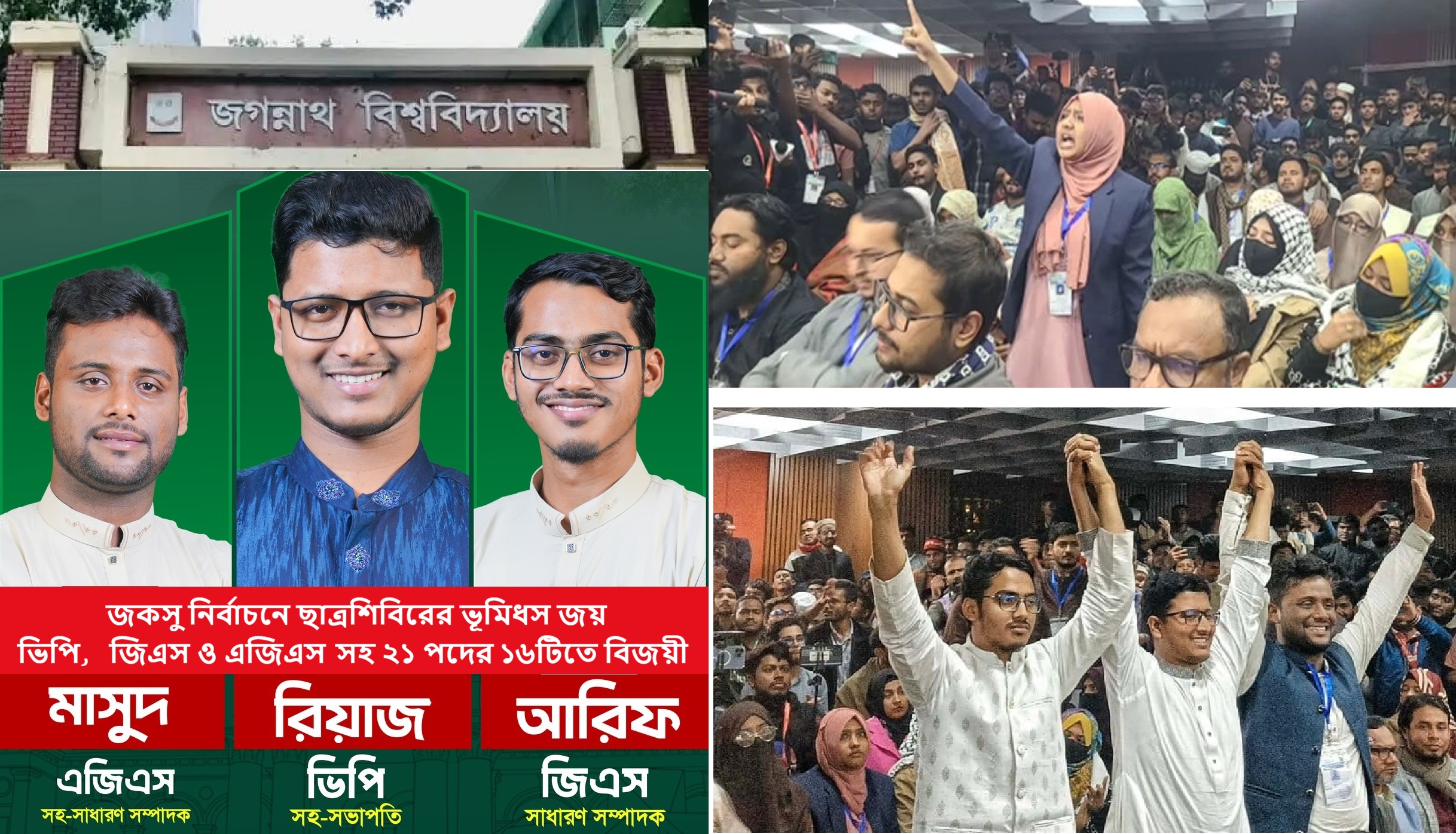 জকসু নির্বাচনে ছাত্রশিবিরের ভূমিধস জয় : ভিপি, জিএস ও এজিএস-সহ ২১ পদের ১৬টিতে বিজয়ী
