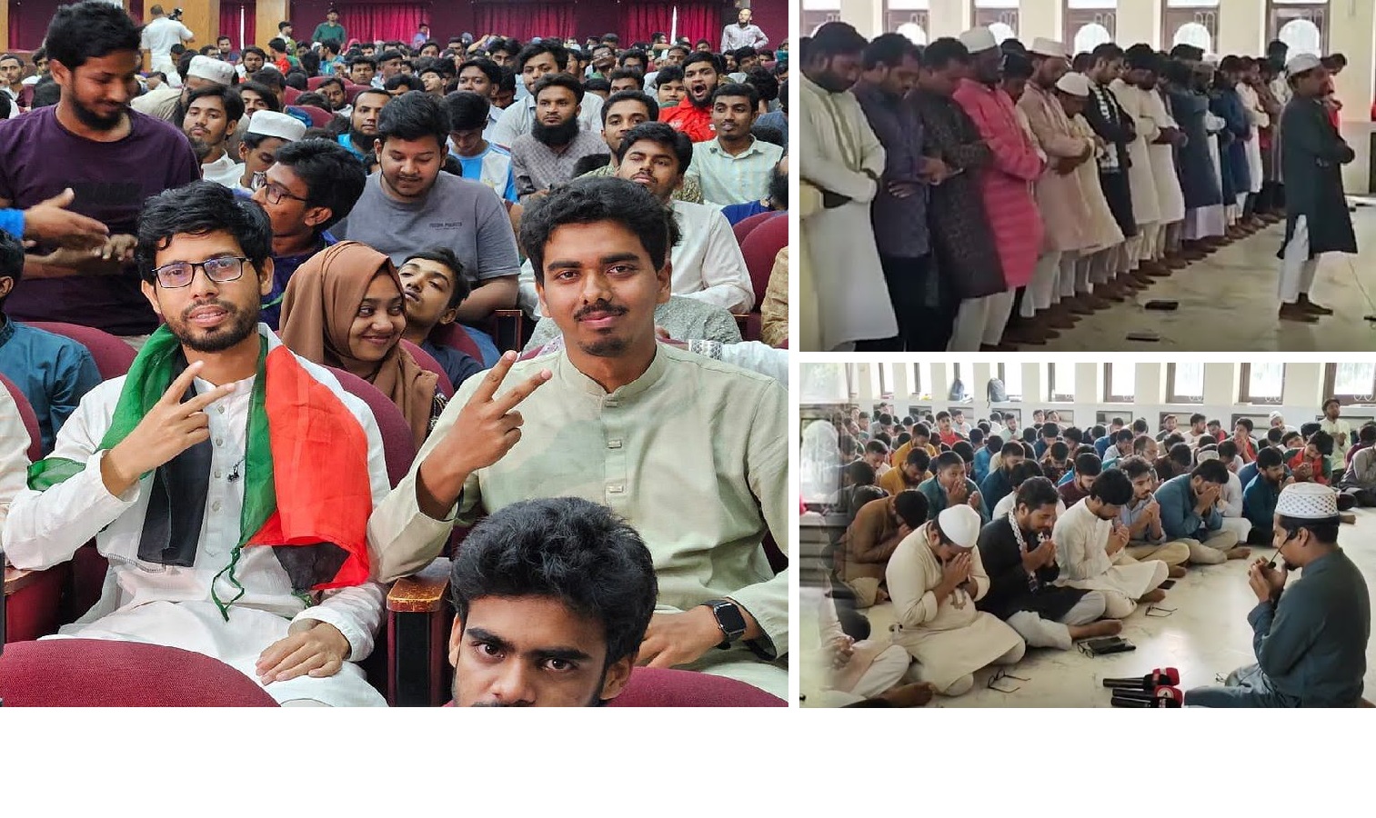 রাকসুতে শিবির প্যানেল বিজয় লাভের পর শোকরানা নামাজ আদায়