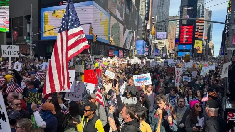 প্রেসিডেন্ট ডোনাল্ড ট্রাম্পের নীতির বিরুদ্ধে যুক্তরাষ্ট্রের বিভিন্ন শহরে প্রতিবাদ কর্মসূচিতে যোগ দিয়েছে বিপুল সংখ্যক মানুষ। নিউইয়র্ক, ওয়াশিংটন ডিসি, শিকাগো, মায়ামি ও লস এঞ্জেলসসহ বিভিন্ন শহরে এই বিক্ষোভ হয়েছে। নিউইয়র্কে টাইম স্কোয়ারের সামনের সমাবেশে হাজার হাজার মানুষ অংশ নিয়েছে। সড়ক ও পাতাল রেলেও প্রবেশপথগুলো লোকে লোকারণ্য হয়ে পড়েছিলো। তারা ‘রাজতন্ত্র নয়, গণতন্ত্র’ এবং ‘সংবিধান বিকল্প কিছু […]